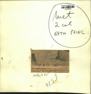 The youngest daughter of Queen Juliana and Prince Bernhard of the Netherlands, Princess Maria Christina, was 12 Wednesday. She is knitting in this informal portrait.