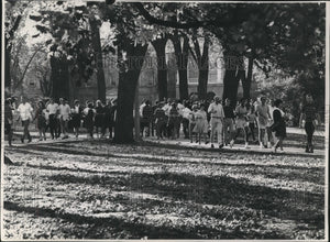 1963 Press Photo Walkway beneath elms of Boscom hill filled with students, WI.