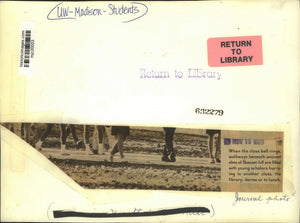 When the class bell rings, walkways beneath ancient elms of Bosom hill are filled with young scholars hurrying to another class, the library, dorms or to lunch. University Wisconsin - Madison - Students..