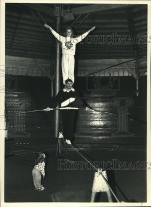 1988 Press Photo Enrico and Debbie Wallenda practice high-wire act in Baraboo