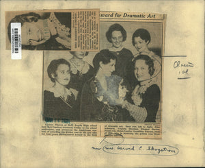 Laetere Players of Holy Angels High school held their Laetere ceremony Friday in the school auditorium, and preserved the traditional custom of awarding the golden rose to the girl who for four years distinguished herself in the field of dramatic art. Rear row, left to right: Jean Schwartz, Virginia Sheehan, Eleanor Davies. Front row, Helen Lawler, Geraldine Friesch, class of 1931, who is receiving the golden rose from Harriet Linehan, now Mrs. David E. Skogstrom. Marquette university's homecoming dance October 26 will be the big moment for Miss Harriett Linehan, who has been chosen as the partner of Fred Muth, student chairman of homecoming. Miss Lineman is the daughter of Mr. and Mrs. W.F. Linehan, of 1621 West Wisconsin avenue.