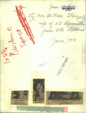 1971 Press Photo Janet Steiger, wife of US Representative William Steiger