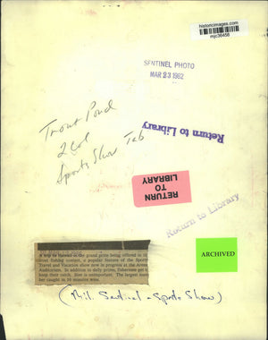 A trip to Hawaii is the grand prize being offered in the trout fishing contest, a popular feature of the Sports-Travel and Vacation show now in progress at the Arena and Auditorium. In addition to daily prizes, fishermen get to keep their catch. Size is unimportant. The largest number caught in 10 minutes wins. (Milwaukee Sentinel -- Sports Show)