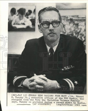 Pueblo exec resigns from Navy---Lieutenant Edward R. Murphy Jr., executive officer of the USS Pueblo, has resigned from the Navy the christian Science Monitor says. Murphy is pictured during a recent visit to Boston (Boston, Massachusetts) (United States Navy) (USS Pueblo)