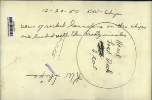 1950 Press Photo Rocket launchers and missiles on the ship's deck for Korean war