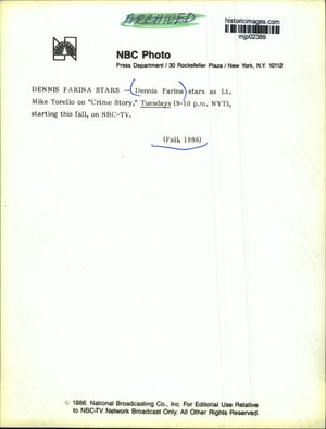 1986 Press Photo Dennis Farina stars as Lt. Mike Torello on "Crime Story"
