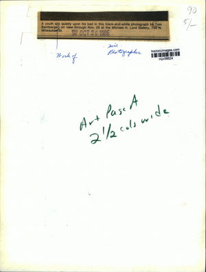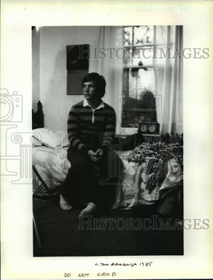 1986 Press Photo A youth sits quietly upon his bed photograph by Tom Bamberger