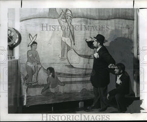 1947 Press Photo Mayville, Wisconsin, mural depicting Indian life 100 years ago.