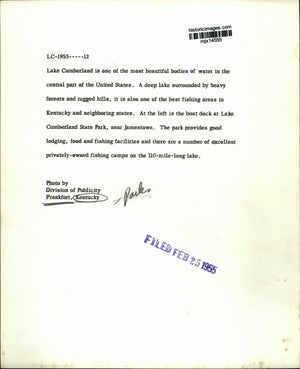 Lake Cumberland is one of the most beautiful bodies of water in the central part of the United States. A deep lake surrounded by heavy forests and rugged hills, it is also one of the best fishing areas in Kentucky and neighboring states. At the left is the boat dock at Lake Cumberland State Park, near Jamestown. The park provides good lodging, food and fishing facilities and there are a number of excellent privately-owned fishing camps on the 110-mile-long lake.