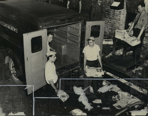 Pictures shows papers being carried in to trucks, of the Wisconsin News..from the mailing room.