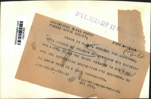 Governor Wilbur M. Brucker of Michigan was successful September 12 in the state primary in his race for the Republican nomination for governor. He is shown here in a late photograph.