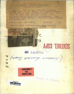 1960 Press Photo Bronze Kamakura Buddha in Japan - mjx30350