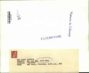 Mr. and Mrs. Jack Webb from NBC Program Dargnet