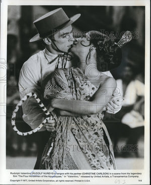 Rudolph Valentino (Rudolf Nureyev) tangos with his partner (Christine Carlson) in a scene from his legendary film "The Four Horseman of the Apocalypse," in "Valentino," released by United Artists, a Transamerica Company. Rudolf Nureyev is dead.