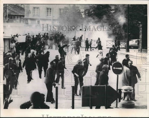 1967 Press Photo Rioters Hurl Stones in Quimper, France - mjx36407