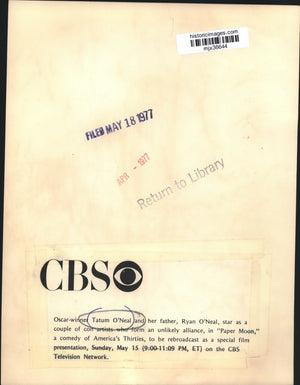 1977 Press Photo Tatum and Ryan O'Neal Star in CBS's Comedy, "Paper Moon"
