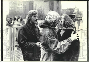 1972 Press Photo Two Sons in East Berlin Greet West Berlin Mother for Visit