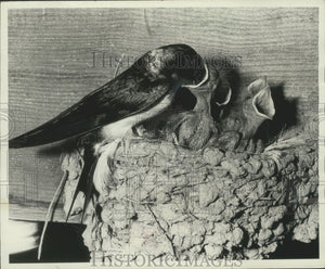 1966 Press Photo Mother Barn Swallow Feeds Chicks in Inverness, California