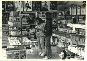 Cindy Basinger and Donald Mays from Ravenna, Ohio check Elvis material in a souvenir shop in Memphis. Elvis Presley- Misc
