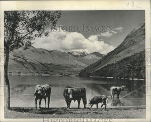 1951 Press Photo Cows at Wakatipu Lake in Paradise district of New Zealand