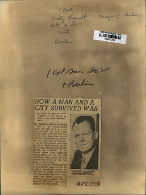Willy Brandt Mayor of Berlin This is an extraordinary story, the epic of a man and the epic of a city, each a part of the other, and how they survived war's destruction and diabolical dictatorship to symbolize the road back to freedom. All the world knows what happened to Berlin during the air raids that reduced much of that proud city to rubble. All the world knows what degraded plans Russia has for that part of Berlin which under the free world has shown up the failures of communism.