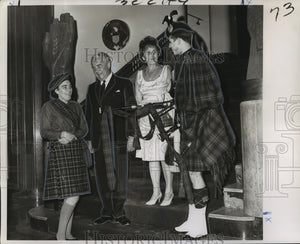 Callingthe tune at a "Night in Great Britain" dinner at International House Thursday night was New Orleanian Jud Schoendorf (at right), a member of the New Orleans Highlanders Bagpipe corps. Others are (from left) Mrs. Beatrice Eubanks, a hostess for the evening; Stafford Barf-Jones, British consul-general, and his wife. The affair was one of a series of regular International House Thursday night membership dinners.