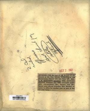 Women of the Church of the New Orleans Presbytery - Officers for the year of the Women of the Church of the New Orleans Presbytery of the Presbyterian Church U.S. area, from left, Mrs. Z.W. Bartlett, president; Mrs. Richard Baines, treasurer; and Mrs. Cullen Garison, vice president. Mrs. Garison and Mrs. Baines were elected yesterday. Mrs. Bartlett remains in office for another year as part of her two-year term.