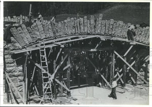 The Blue Ridge Parkway Bridge at Deep Gap, N.C., under construction during the 1930's. It was one of over a hundred bridges built in the state between 1935 and 1941 as a WPA project.