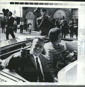 1969 Press Photo Lloyd Bucher, thumbs up, and wife in Pueblo, Colorado parade
