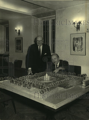 1967 Press Photo Mayor Schiro & Seymour Weiss inspect Spanish Plaza model, Spain