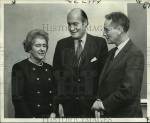 Meeting before a lecture Wednesday night, Mrs. George A. Dreyfous, left, speaks with former US Attroney General Nicholas Katzenbach, center, and Dr. Joseph Sweeney, Dean of the Tulane Law School. Mrs. Dreyfous established a lectureship at the law school in 1965 under which Katzenbach spoke on "Protest, the Politics of Dissent and the First Amendment."