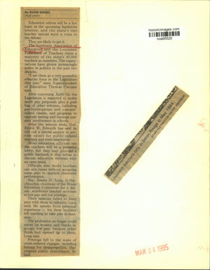 Louisiana teachers rally in Baton Rouge in May 1984 - Education reform will be a hot topic in the upcoming legislative session, and the state's two teacher unions want a voice in the debate. The Louisiana Association of Educators and the Louisiana Federation of Teachers claim a majority of the state's 42,000 teachers as members. The organizations have grown increasingly active in politics in the past two decades.