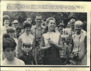 1969 Press Photo Julie Nixon Eisenhower, gives White House Tour of Grounds