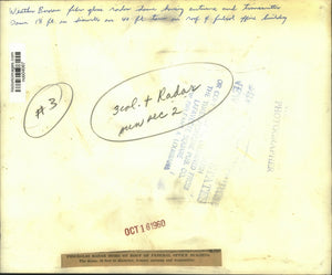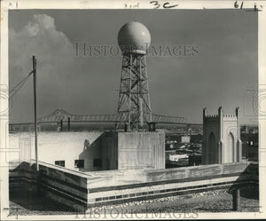 Fiberglas radar dome on roof of Federal Office Building. Weather Bureau Fiberglas radar dome having antenna and transmitter Dome 18 ft in diameter on 40 ft tower on roof of federal office building.