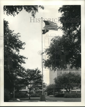 1973 Press Photo Louisiana State flag beneath American flag in Duncan Plaza.