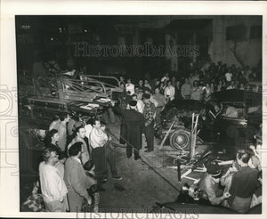 1963 Press Photo Scene of a car and fire truck accident. - nob10792