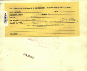 Chief Justice John B. Fournet of the Louisiana Supreme Court, center, talks with Archbishop Philip M. Hannan, left and LSU Law School Dean Paul M. Herbert at retirement ceremonies in his honor today.