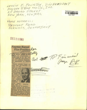 Appointment of Leslie E. Fourton, is former resident of New Orleans, as vice-president of Hayden Stone & Company Incorporated, New York brokerage and investment firm, was announced Wednesday, The appointment is effective January 2. Fourton attended Tulane university here and Columbia university in New York and began his career as an employee of The Times-Picayune. He joined Hayden Stone in 1958 as a petroleum analyst and assistant manager of the investment research department, later becoming director of research.