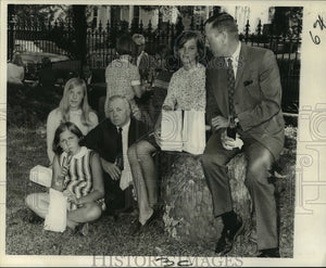 The Luise S. M'Gehee School in Prytania st. was the setting Wednesday last for the annual Father-Daughter luncheon. Pictured at the informal event are Mr. Paul V. Godfrey (left) with his daughters, Kate (foreground), and Ann and Mr. Ralph J. Christman Jr. with his daughter, Charlotte.