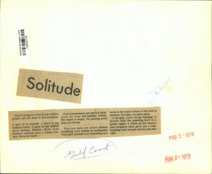Solitude - You're living in a city of one million people, and you want to find seclusion. A spot all to yourself. A place to jog without traffic. A place to nap without guilt feelings. Solution: Make your summer vacation spot a winter venture. Go to the beach. Gulf Coast.