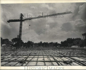 This site of a 218-unit luxury apartment complex on Metairie Road is a long way off from reaching its planned height of seven stories as the height of the solitary crane would indicate. The crane's main function is to lift ready mix concrete for pouring into forms for the complex superstructure, but a Teamster strike has prevented that.