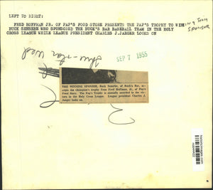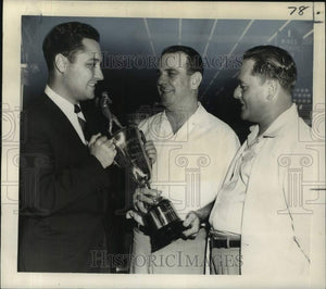 1955 Press Photo Buck Sensebe accepts Pap's trophy from Fred Hoffman Jr.