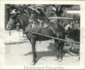1971 Press Photo New Orleans buggy horse in the French Quarter wears a hat.
