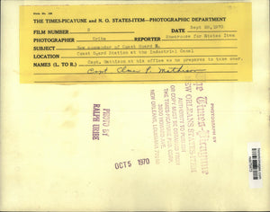 Captain Elmer Mathison at his office as he prepares to take over. He is the new commander of Coast Guard Station at the Industrial Canal.