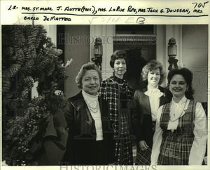 Foliage and plant decorations as splendid as only garden clubbers can make then decked the homes on the New Orleans Garden Society's "Holiday Around the Square" tour this week. The square was Coliseum, and some society members were photographed in the Duncan Strachan home, where tea was served. At left, Mrs. St. Marc J. Flotte, society president, and Mmes. LaRue Pope, Jack G. Doussan and Carlo DeMatteo welcome guests to the tour, which also included the homes of Mrs. Robert A. Baker and the Stephen B. Murrays and St. Mary's Assumption Church.