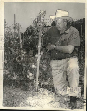 1967 Press Photo Plaquemines Parish agent Murphy M'Eachern checks tomatoes