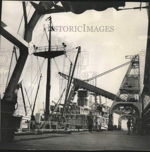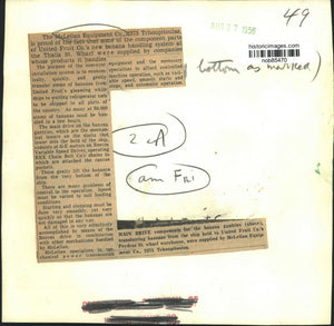 Main drive components for the banana gantries (above), transferring bananas from the ship hold to United Fruit Company's Poydras Street wharf warehouse, were supplied by McLellan Equipment Company, 2375 Tchoupitoulas. The McLellan Equipment Company, 3375 Tchoupitoulas, is proud of the fact that some of the component parts of United Fruit Company's new banana handling system at the Thalia Street Wharf were supplied by companies whose products it handles.