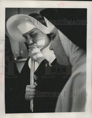 1965 Press Photo Sisters Mary Basil Anthony and Mary Ambrose study tough score