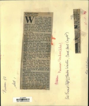 Bill Friend, J. Barbee Winston, Carol Hart of the class of '43 Isidore Newman School. When a high school class that's having a reunion can claim a CIA agent, six lawyers, three physicians, three engineers and two architects, to say nothing of a Mississippi River bar pilot, an interior decorator, a writer of children's books, and an assistant to the governor of North Carolina, you know the conversation is going to cover wide territory. Rick Weidman.
