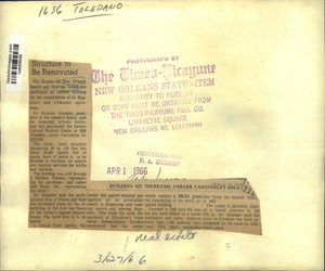 1966 Press Photo New Orleans Speech & Hearing Center building on Toledano